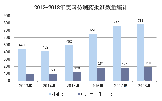 2015年以來,美國仿制藥的審批隨著收費制度的完善逐漸提速,每年批準(zhǔn)的ANDA數(shù)量逐年增多。審批的提速,雖然對TEVA、Mylan等歐美仿制藥巨頭的增量品種構(gòu)成一定的利好,但更多的則體現(xiàn)為對其巨大的存量業(yè)務(wù)的沖擊。2018年美國仿制藥品準(zhǔn)企業(yè)個數(shù)為781個,暫時性品準(zhǔn)企業(yè)個數(shù)為190個。