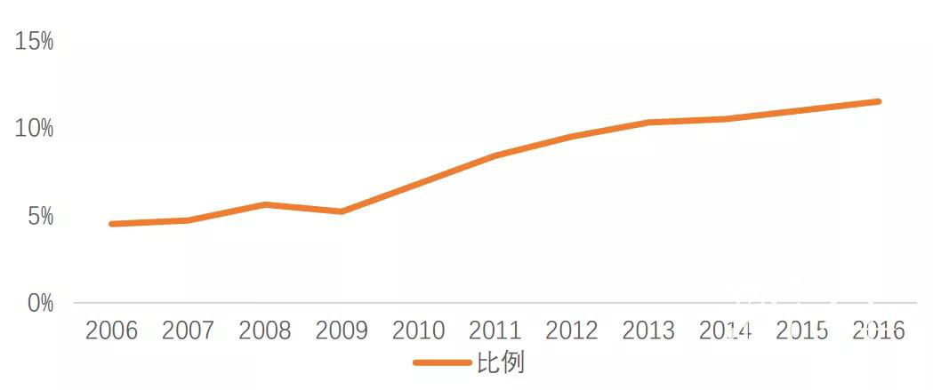 印度仿制藥的發(fā)展經(jīng)歷了醫(yī)藥產(chǎn)品專利取消、并購浪潮、跨國合作+研發(fā)三大階段,因此它的仿制藥在世界的影響力是毋庸置疑的。目前印度的仿制藥藥品銷往全球包括美國、英國、德國等在內(nèi)的數(shù)十個國家,其中美國更是印度仿制藥的最大進(jìn)口來源國。根據(jù)Motilal Oswal調(diào)研數(shù)據(jù)顯示,印度仿制藥在美國仿制藥市場比例在不斷提高,從2006年的4.5%增長到了2016的11.5%。
